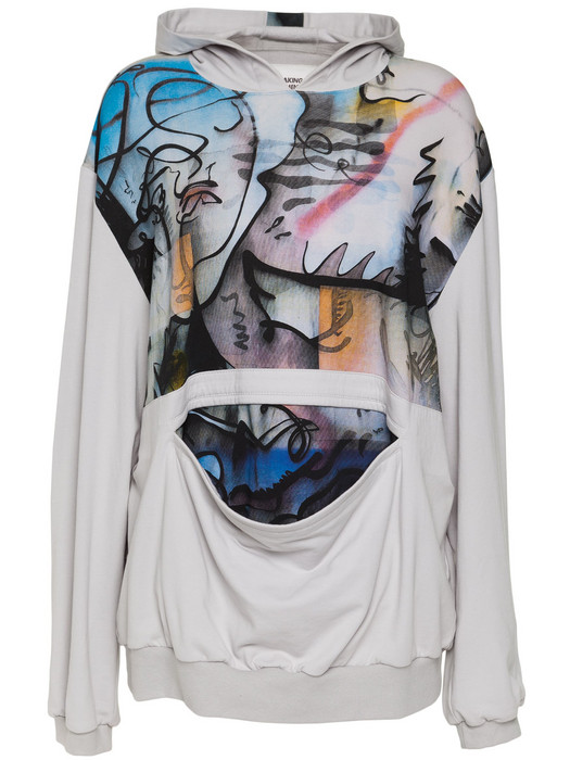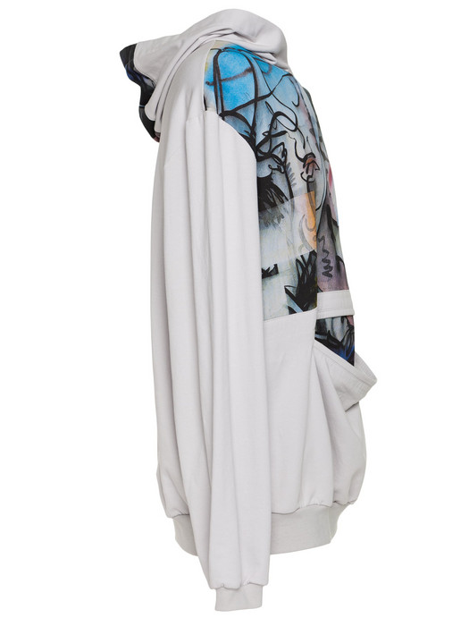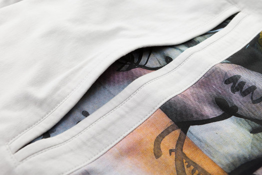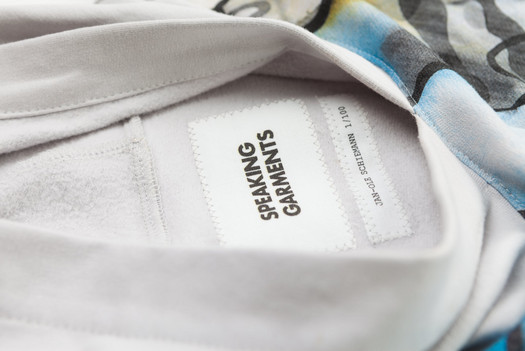 Bei dem handgenähten Hoodie zeugen die Gestalterische Feinheiten vom Understatement der Speaking-Garments-Kollektion. So verläuft beispielsweise der partielle Print auf der Vorderseite des Styles versteckt in der Känguru-Klappentasche weiter. Der Hoodie wird in einer Auflage von 100 Stück hergestellt.