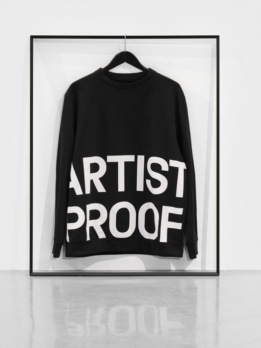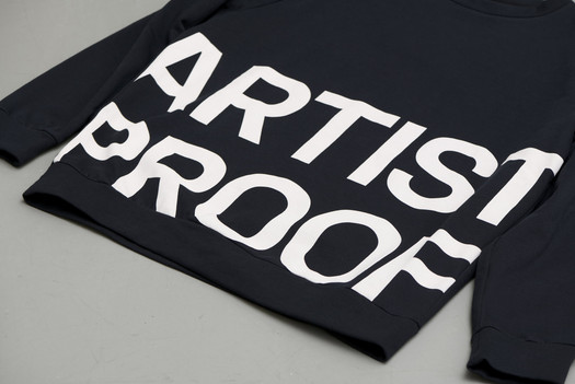 ARTIST PROOF is a print or object that is specifically made for the artist in addition to the actual edition. This exemplar stays in the artists personal collection. Our sweater wears this term in a striking Blockbuster Typo with a generous leading. The sweater has a regular fit and is made from organic cotton.