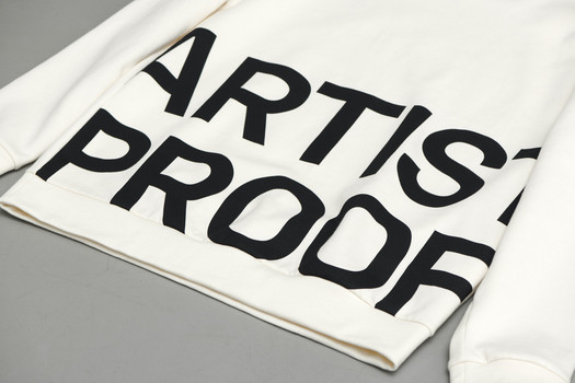 ARTIST PROOF is a print or object that is specifically made for the artist in addition to the actual edition. This exemplar stays in the artists personal collection. Our sweater wears this term in a striking Blockbuster Typo with a generous leading. The sweater has a regular fit and is made from organic cotton.