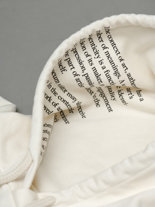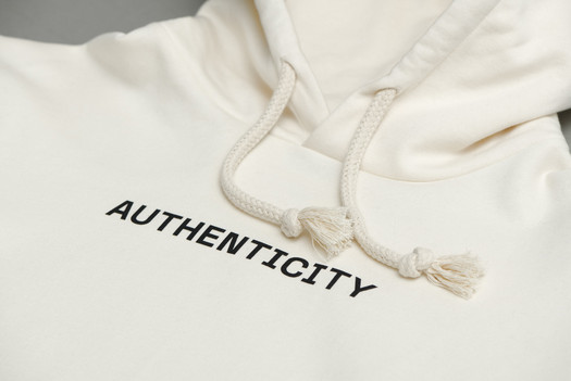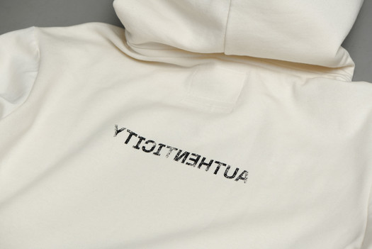 The Authenticity hoodie has a front and back print. Within the hood you find the definition of the term Authenticity in the Art World.