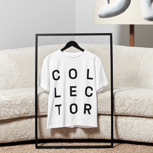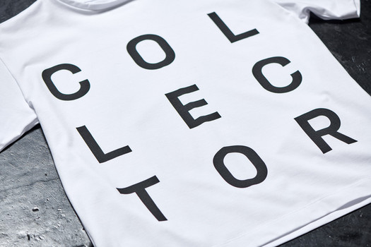 The typography on the shirt is inspired by the system of collecting and the attitude of the collector. Collecting refers not only to art but all the aspects that keeping beautiful objects, memories and moments represents for each and every one of us. The shirt has a straight cut and is made of cotton.
