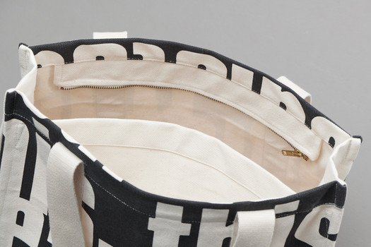 The canvas bag is also printed with the words Steal This in a blockbuster typeface. Inspired by the book Steal This Book by Abbie Hoffmann and redesigned by a typography artist. Written in 1970 and published in 1971, the book is an example of the sixties counterculture. In the style of the counterculture, the book focused mainly on how to fight back against the government and corporations in any way possible.